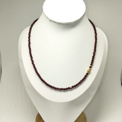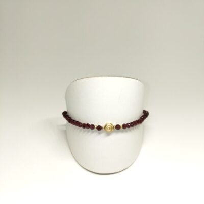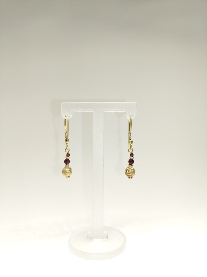 Ohrhänger mit der facettierten Kugeln aus Granat (3mm facettiert) und 925 Sterlingsilber gelbvergoldet in Spiralform Durchmesser ~ 0,5 cm.