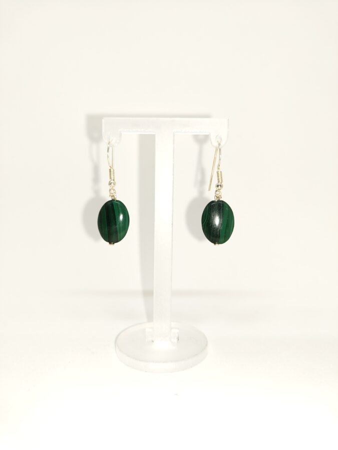 Ohrhänger aus Malachit (1,7×1,2 cm) in ovaler Form. Haken aus 925 Sterling Silber.
