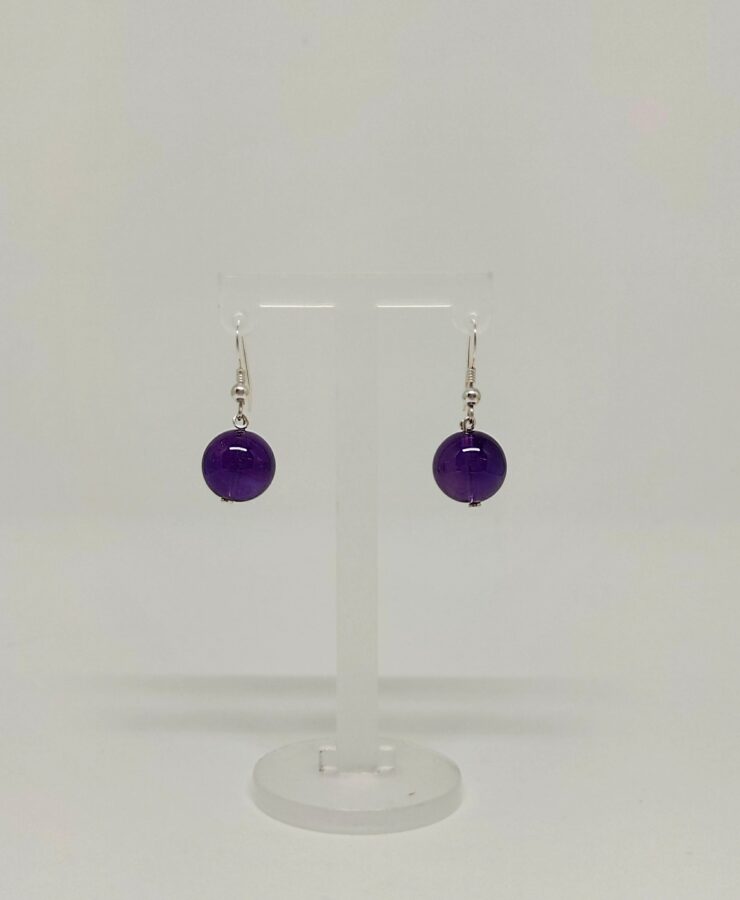 Ohrhänger aus Amethyst in Kugelform. Durchmesser 12mm. Haken aus 925 Sterling Silber.