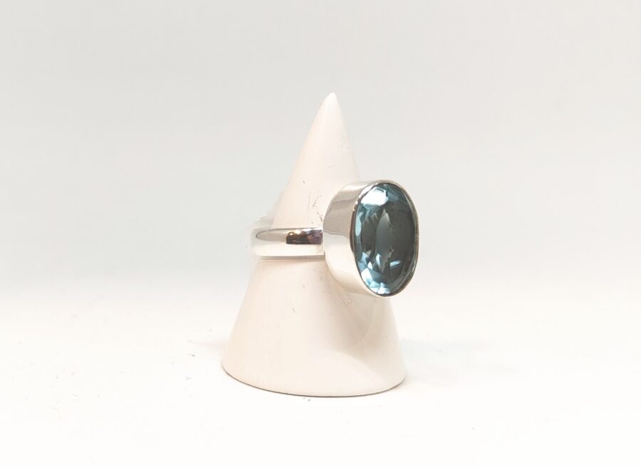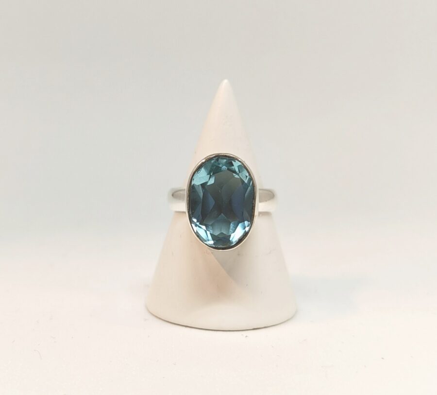 Silber Ring mit Blauer Topas. Maßen 1,5 x 1 cm.