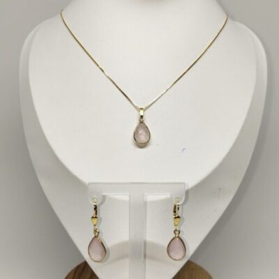 SILBER VERGOLDET SET MIT ROSENQUARZ